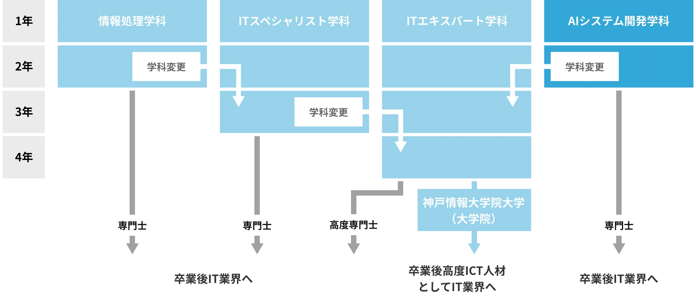 A年度や学科によって、変更になる場合はありますが基本的に下記の通りです。