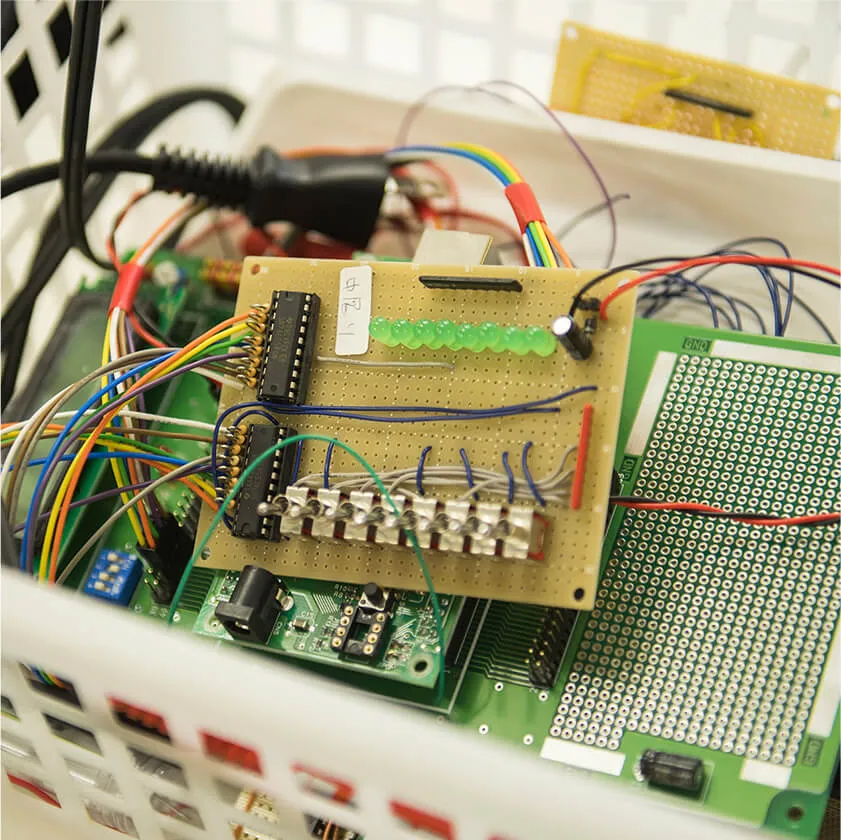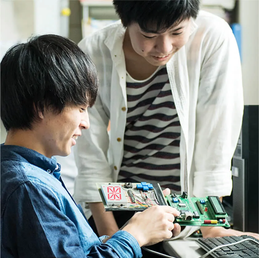 電子回路の仕組みと、制御プログラムの技術をバランスよく学び、最適なハードウエアシステムを設計・開発できる技術者を育成します。
