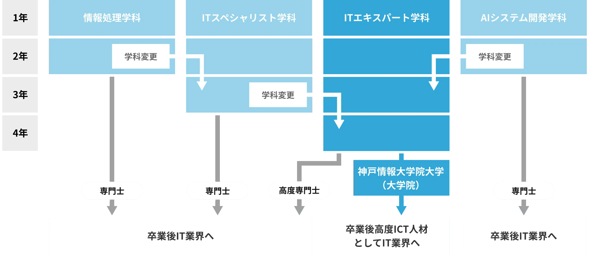 また、大学院を受験することもでき、併設校「神戸情報大学院大学」への進学も可能です。 -