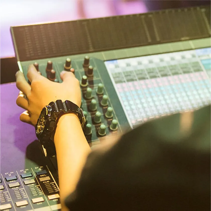 プロ仕様の施設設備で音響・照明・レコーディング・映像制作スキルを習得し、ライブの舞台裏を支えるエンジニアを目指します。