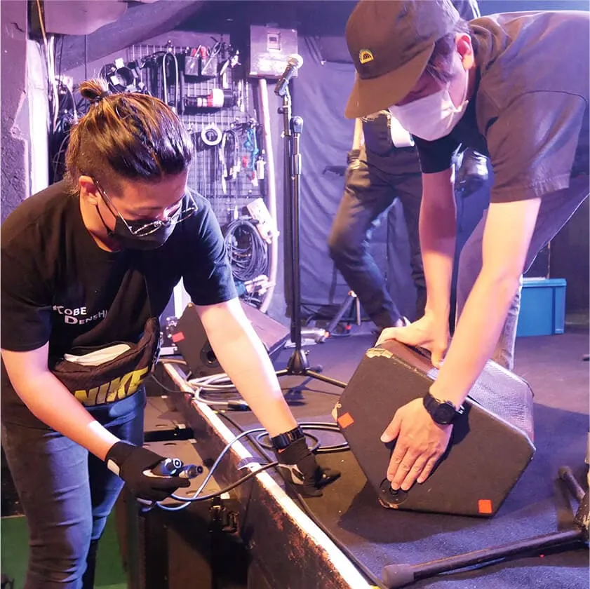 神⼾電子の近郊には数多くのライブハウスがあり、実践の場として音響、照明スタッフを担当する学生もいます。また地元のイベントにも多数の学生が参加し実践力を身につけます。