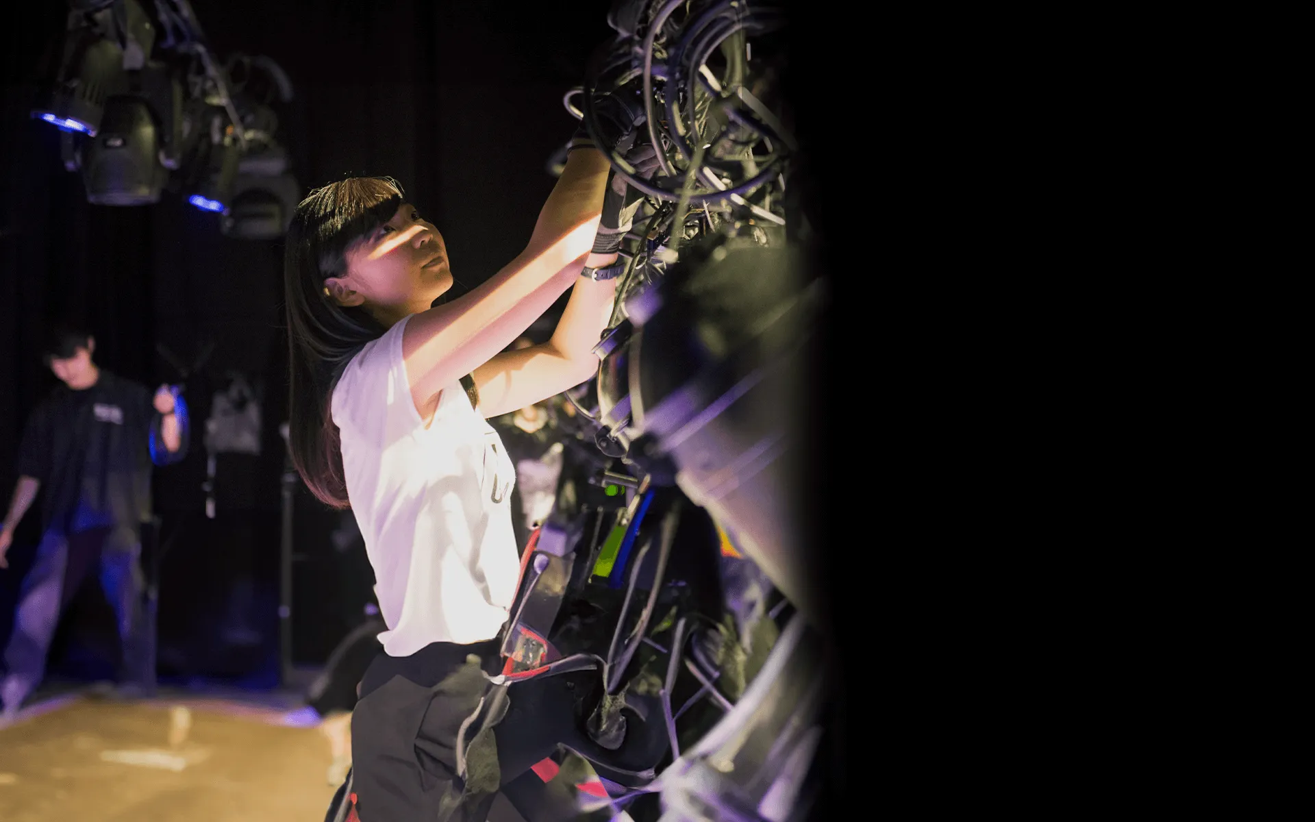 神戸電子は、プロ仕様の機材に触れながら実践的に学べるところが魅力的で、私も2年間でしっかりとスキルアップできました。そして現在は神戸文化ホールのスタッフとして、コンサートやミュージカルの照明演出に携わっています。まだまだ新人ということもあり先輩から教わる毎日ですが、いち早く照明の演出・プランを一人で任せてもらえるように頑張っていきたいです。