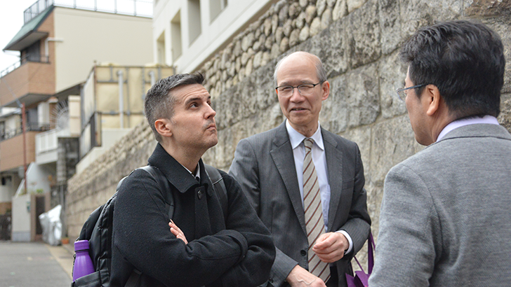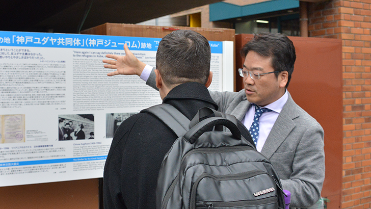 本校が保有する「神戸ユダヤ共同体(神戸ジューコム)」跡地を視察するマーク・アインシュタイン氏